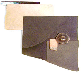 black stoneware, georgia pink marble, glass, indiana limestone, and virginia slate